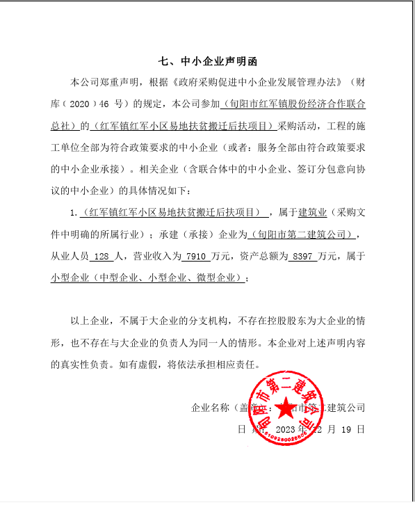 ----------------------------------招标机构发布信息原文:----------------------- 二建中小声明.jpg 旬阳市财政局红军财政所红军镇红军小区易地扶贫搬迁后扶项目中标(成交)明细.pdf 十一、其他事项: ------------------------------------招标信息结束---------------------------- 标签: 中标 项目 红军 小区 公告 上一篇: 2023年12月20日某医院内一科医疗设备采购项目中标公告 最新5000条招标信息列表: 滚动招标 |