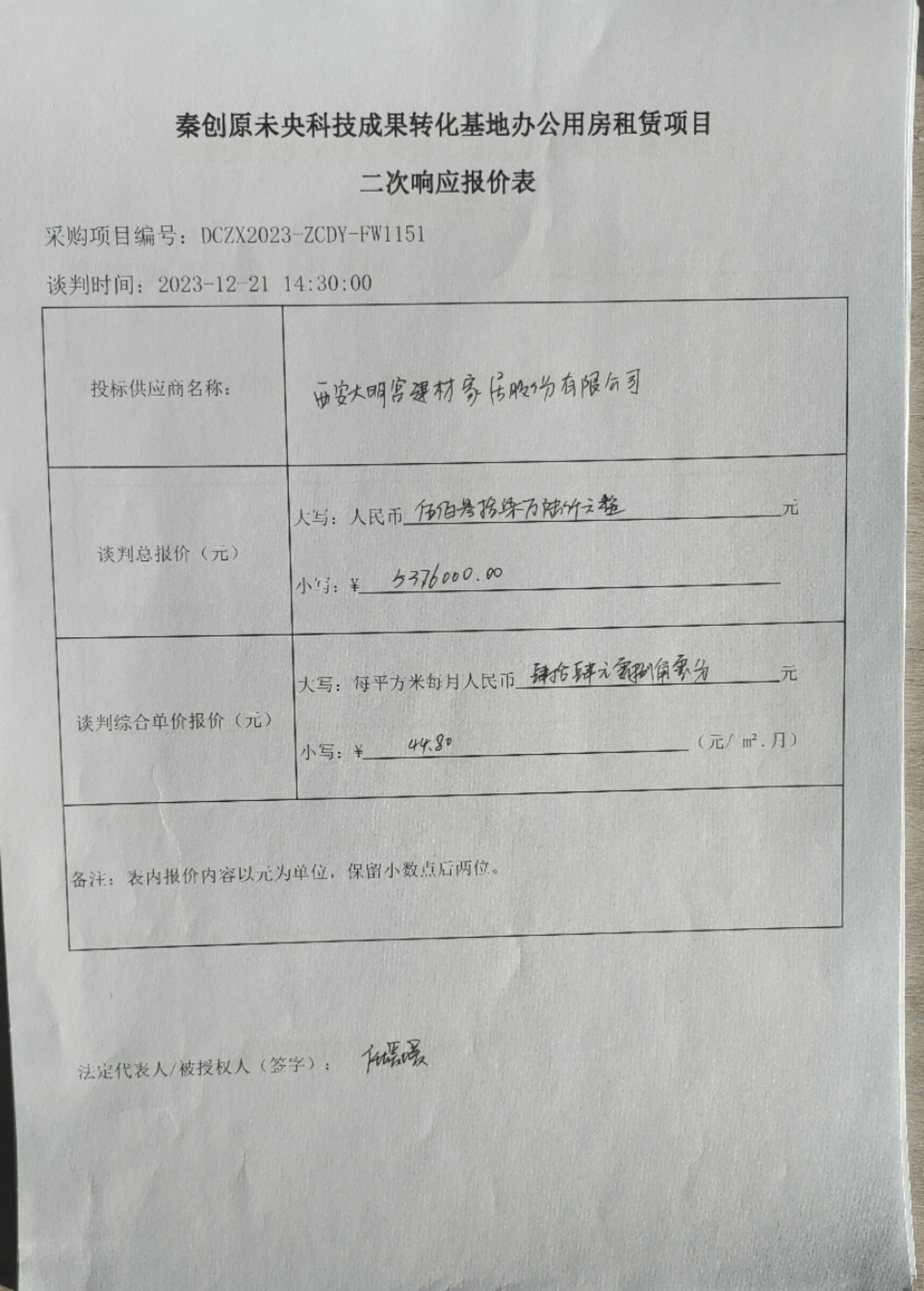 2023年12月22日西安市未央区中小企业服务中心秦创原未央科技成果转化基地办公用房租赁项目中标(成交)结果公告 |