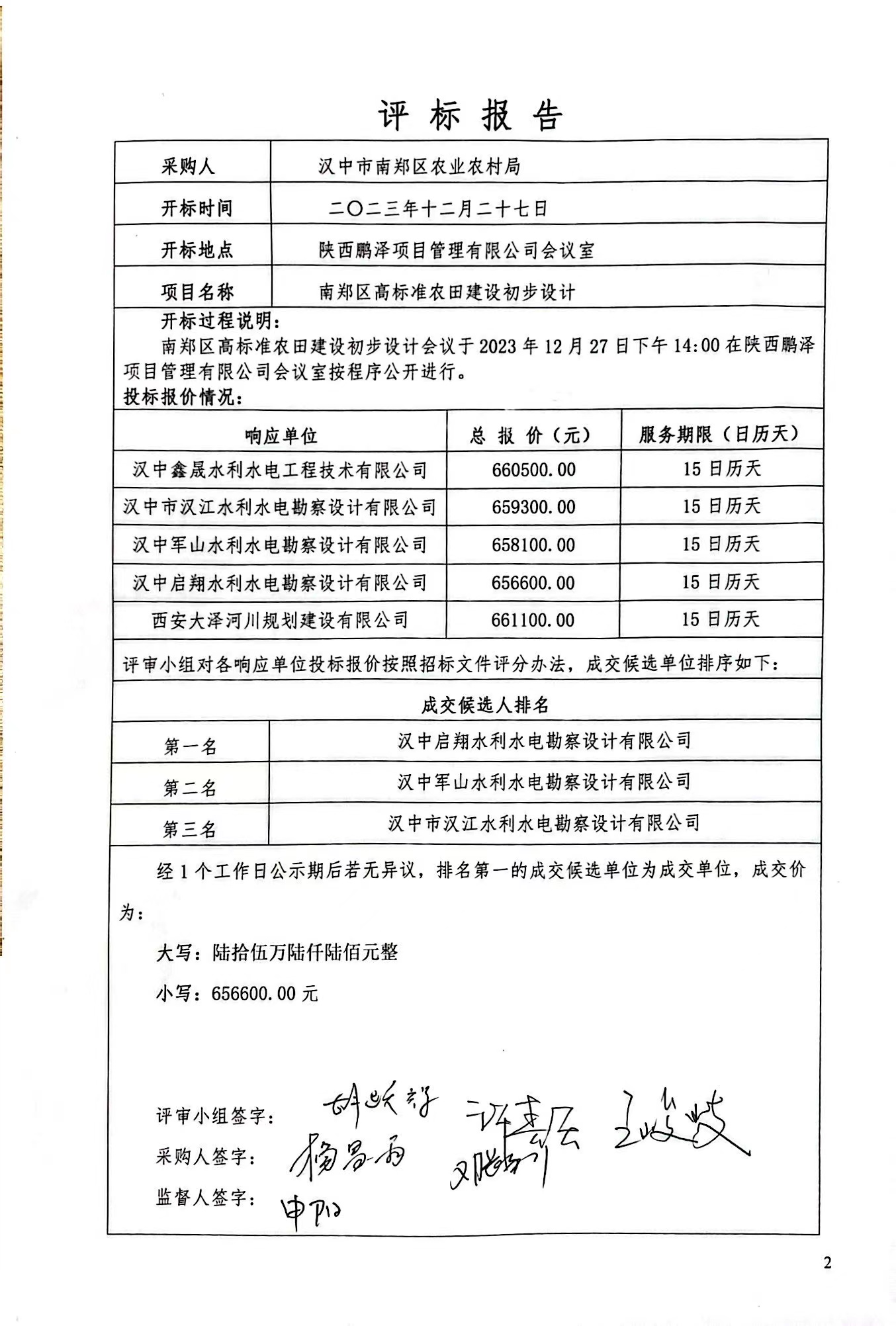 2023年12月28日南郑县农业局南郑区高标准农田建设初步设计中标(成交)结果公告 |