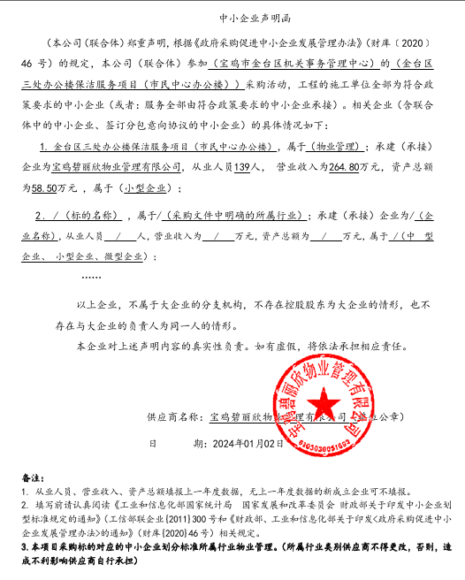 2024年1月3日金台区三处办公楼保洁服务项目中标(成交)结果公告 |
