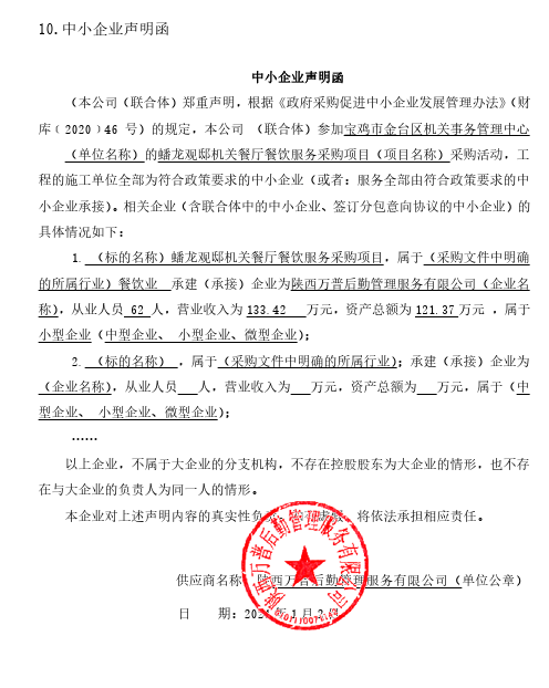 ----------------------------------招标机构发布信息原文:----------------------- 保洁1.png 保洁2.png 宝鸡市金台区机关事务管理中心金台区三处办公楼保洁服务项目中标(成交)明细.pdf 十一、其他事项: ------------------------------------招标信息结束---------------------------- 标签: 中标 办公楼 服务项目 三处 公告 金台区 上一篇: 2024年1月3日2023年市区口袋公园建设(二次)结果公告(采购包1) 最新5000条招标信息列表: 滚动招标 |