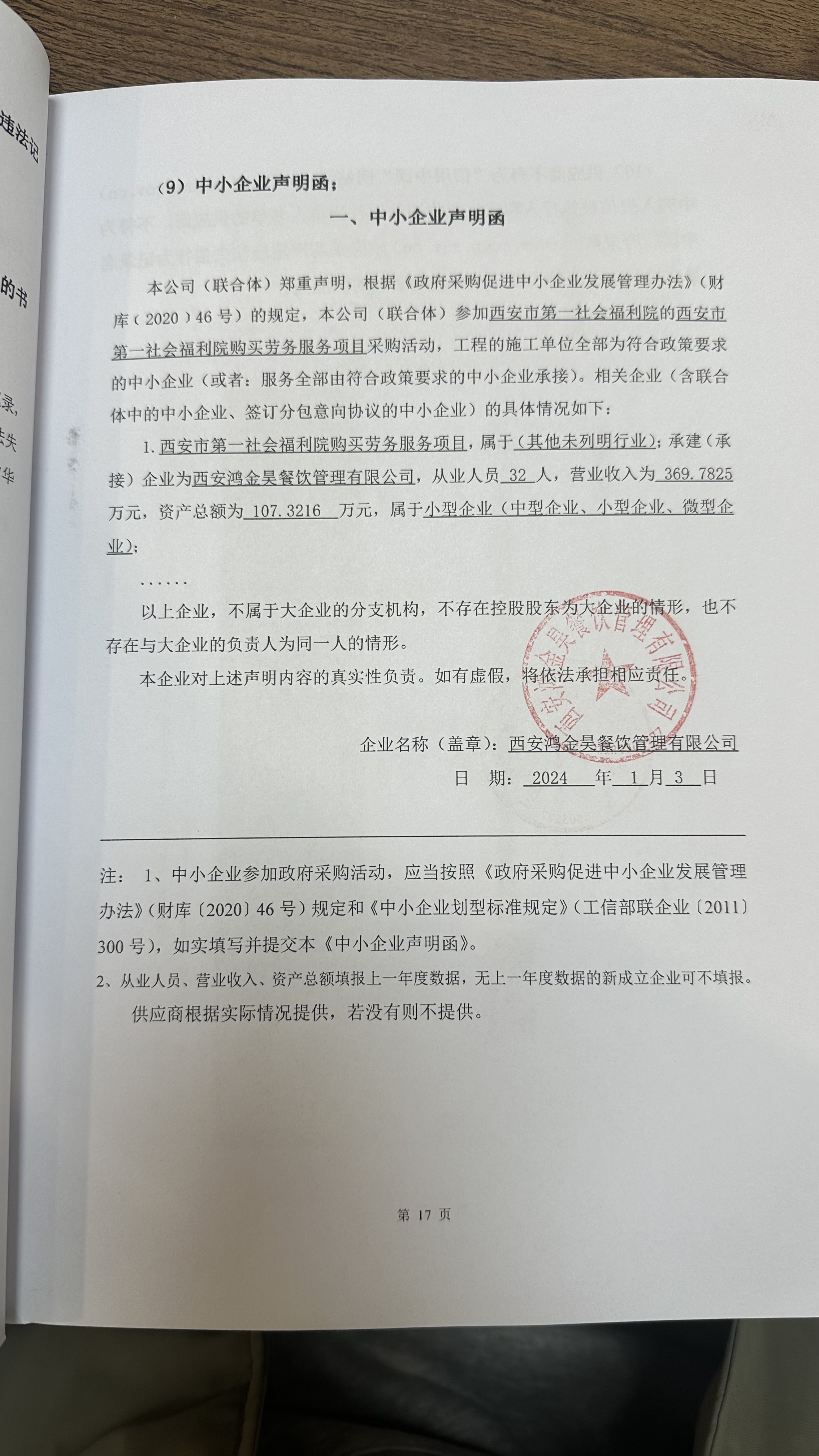 ----------------------------------招标机构发布信息原文:----------------------- 西安市第一社会福利院购买劳务服务中标(成交)明细.pdf 食也安.jpg 和合餐饮.jpg 鸿金昊.jpg 十一、其他事项: ------------------------------------招标信息结束---------------------------- 标签: 中标 西安市 福利院 劳务 公告 社会 上一篇: 2024年1月4日中共南通市委机要保密局协同办公平台标准化建设项目(包2第三次采购)中标公示 最新5000条招标信息列表: 滚动招标 |