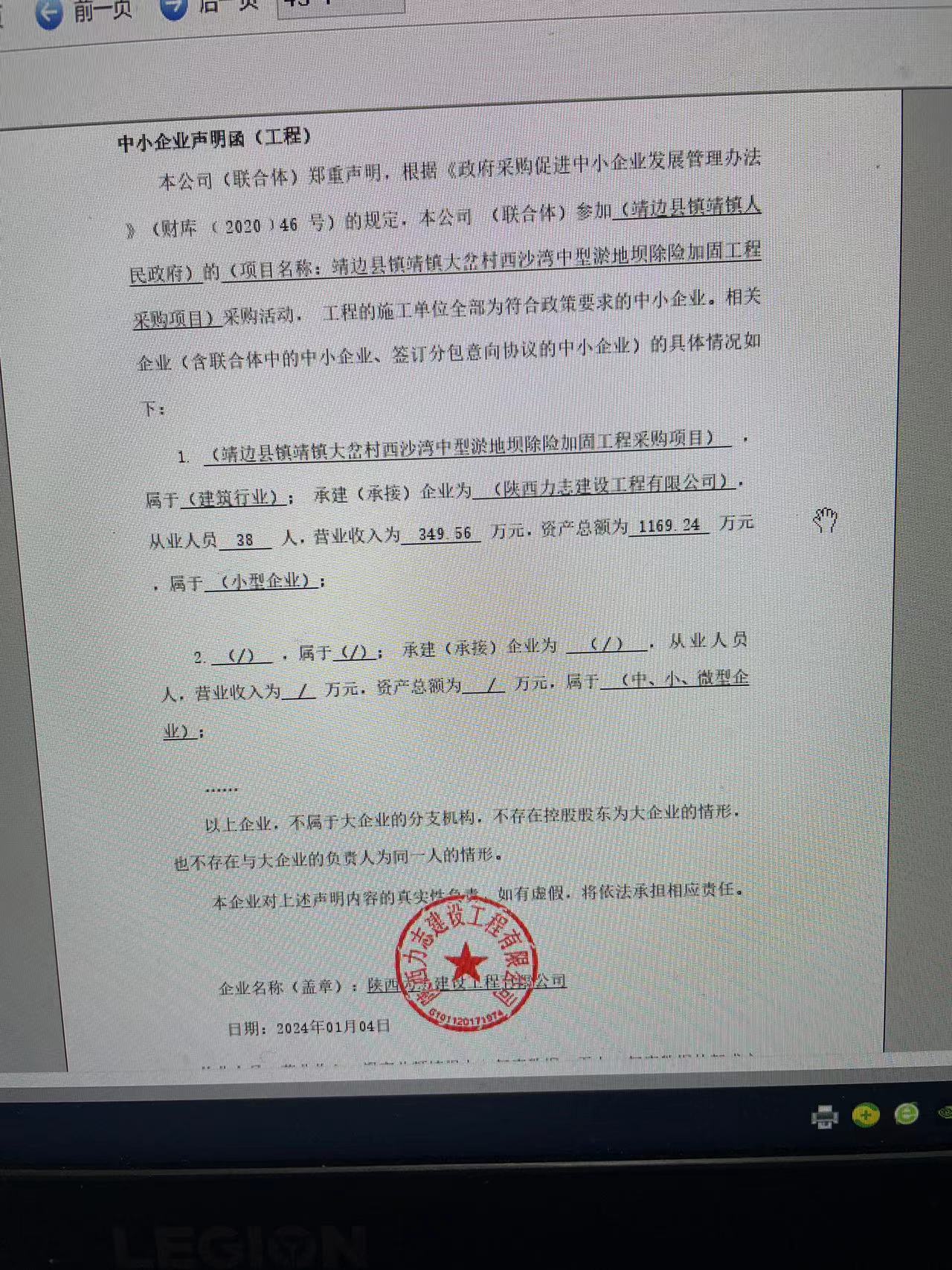 ----------------------------------招标机构发布信息原文:----------------------- 力志中小企业声明函.jpg 靖边县镇靖镇人民政府靖边县镇靖镇大岔村西沙湾中型淤地坝除险加固工程采购项目中标(成交)明细.pdf 十一、其他事项: ------------------------------------招标信息结束---------------------------- 标签: 项目 采购 工程 中标 西沙 靖边县 公告 上一篇: 2024年1月10日靖边县镇靖镇大岔村张山中型淤地坝除险加固工程采购项目中标(成交)结果公告 最新5000条招标信息列表: 滚动招标 |