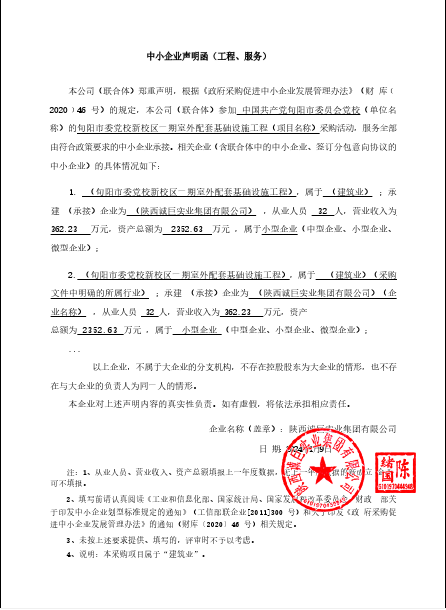 ----------------------------------招标机构发布信息原文:----------------------- 诚巨实业中小声明.png 中国共产党旬阳市委员会党校旬阳市委党校新校区一期室外配套基础设施工程中标(成交)明细.pdf 十一、其他事项: ------------------------------------招标信息结束---------------------------- 标签: 工程 中标 旬阳 室外 基础设施 新校区 市委党校 上一篇: 2024年1月11日数字媒体、艺术设计实训室结果公告(采购包1) 最新5000条招标信息列表: 滚动招标 |