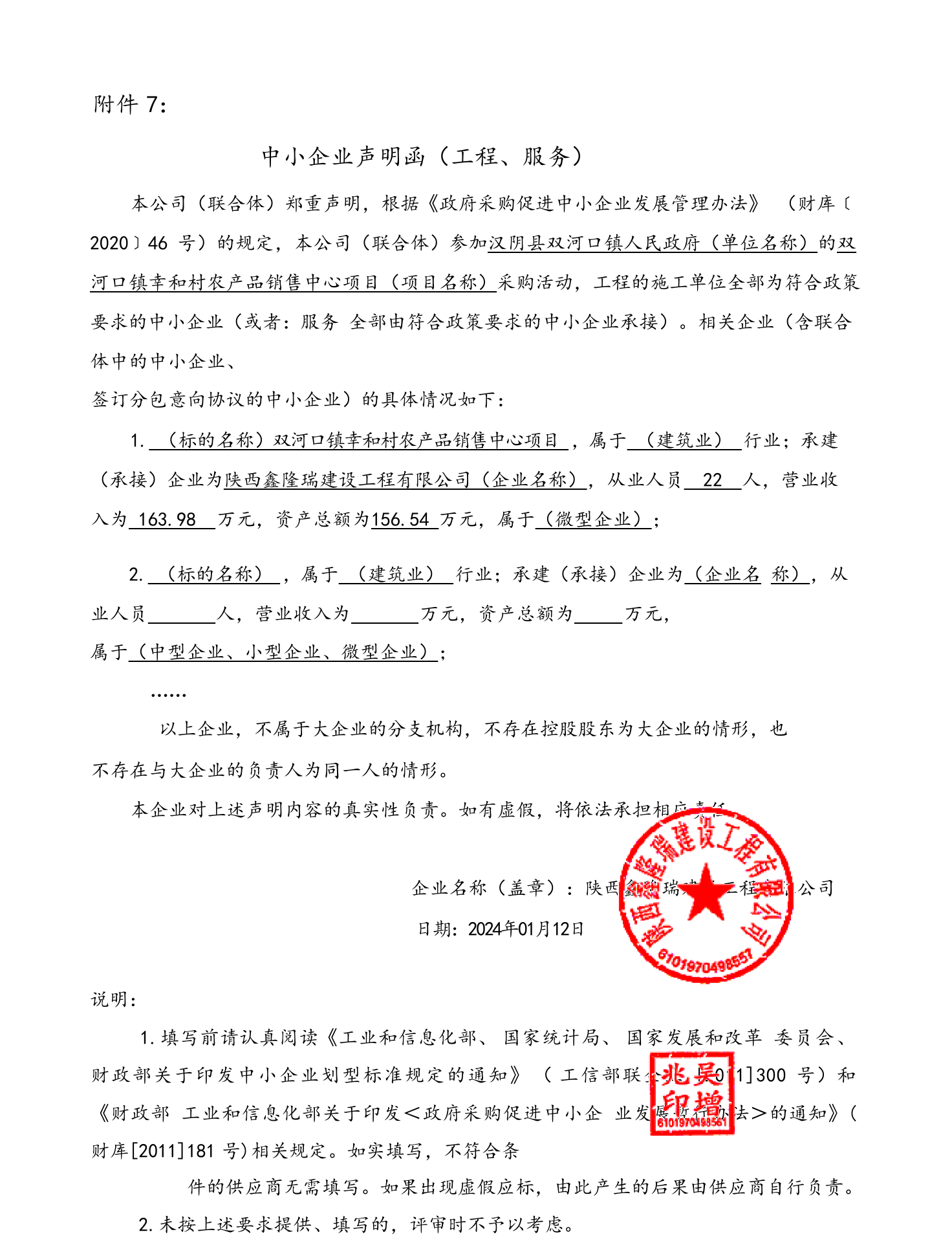 2024年1月15日汉阴县双河口镇人民政府双河口镇幸和村农产品销售中心项目中标(成交)结果公告 |