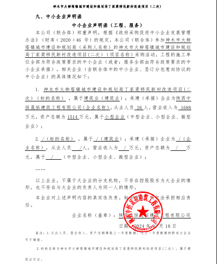 ----------------------------------招标机构发布信息原文:----------------------- 丁家渠移民新村改造项目(二次)磋商文件(2023122801).zip 神木市大柳塔镇城市建设和规划局丁家渠移民新村改造项目(二次)中标(成交)明细.pdf 中小企业声明函.jpg 十一、其他事项: ------------------------------------招标信息结束---------------------------- 标签: 中标 神木 城市建设 新村 规划局 移民 改造项目 上一篇: 2024年1月16日库伦旗公共事业发展中心2023-2024年库伦旗城区节日亮化工程结果公告 最新5000条招标信息列表: 滚动招标 |