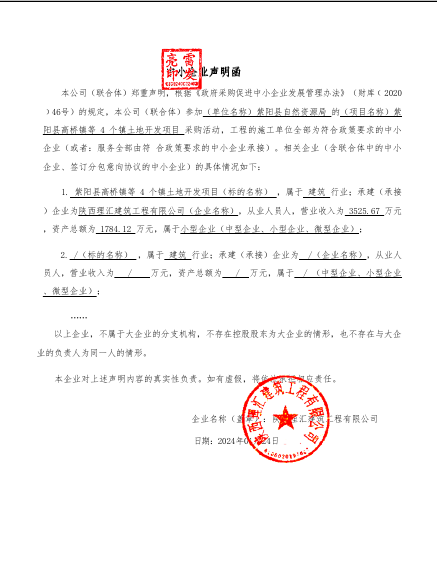 ----------------------------------招标机构发布信息原文:----------------------- 中小企业声明函.jpg CS1003紫阳县高桥土地开发项目1.10定稿.pdf 紫阳县自然资源局紫阳县高桥镇等4个镇土地开发项目中标(成交)明细.pdf 报价表.jpg 十一、其他事项: ------------------------------------招标信息结束---------------------------- 标签: 中标 紫阳县 开发项目 土地 公告 高桥镇 上一篇: 2024年1月26日医院弱电系统设备、线路采购安装项目中标公告 最新5000条招标信息列表: 滚动招标 |