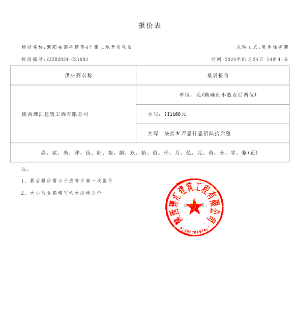 2024年1月26日紫阳县自然资源局紫阳县高桥镇等4个镇土地开发项目中标(成交)结果公告 |