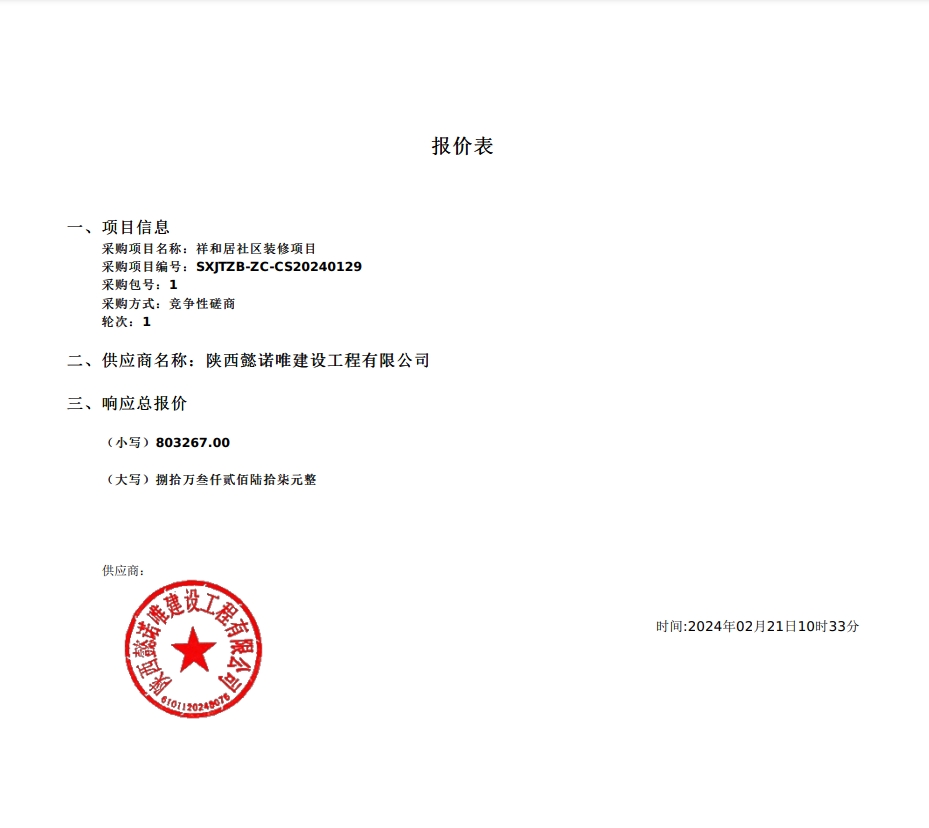 2024年2月22日西安市未央区谭家街道办事处祥和居社区装修项目中标(成交)结果公告 |